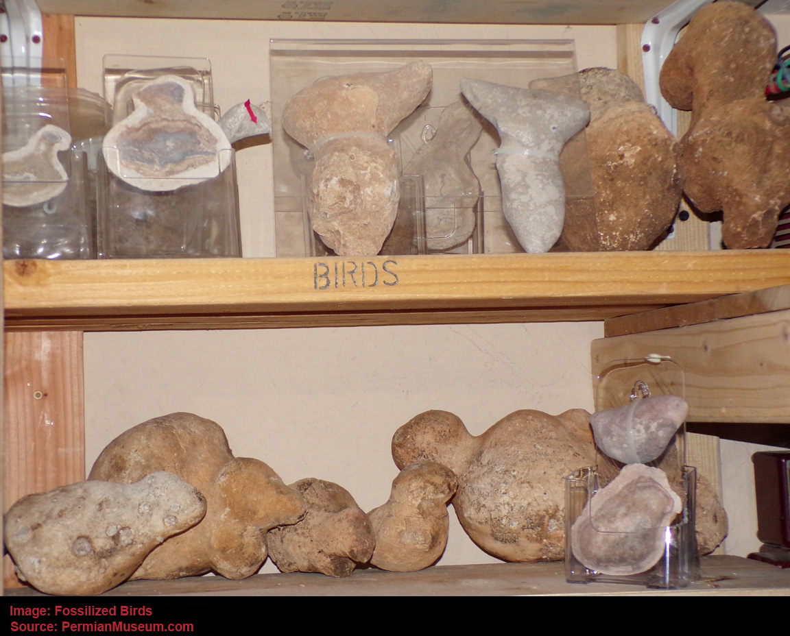 Near some of the egg nest areas there are also fossilized remains of intact bird like life forms, indicating the non destructive form of death happened over a large area. The bird fossils tend to indicate the more instantaneous death and fossilization process. A picture of some of the larger bird forerunners is shown below: