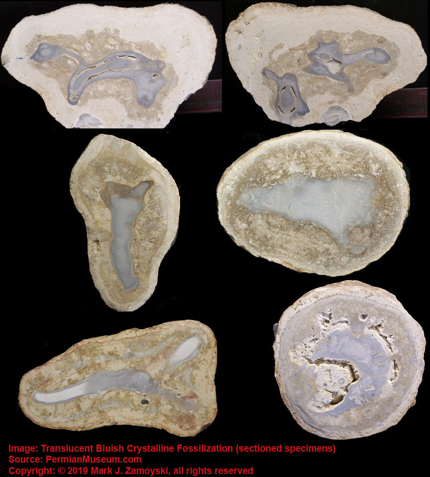 Examples of Entire Life Form Fossilized as a Translucent Bluish Crystal