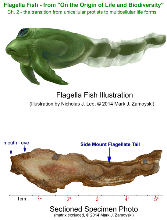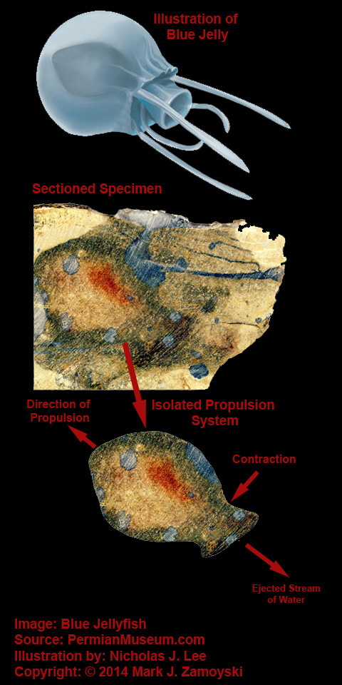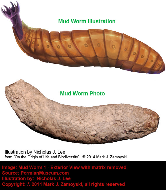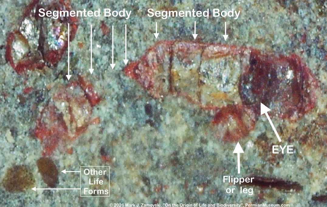 The Permian explosion had the same input, plus the evolved Cambrian life forms that survived the Permian extinction events. The survivors included sharks, sting rays, reptiles and lung fish, which have also been found and are presented in the book. This allowed a more robust explosion of life that gave rise to the age of the dinosaurs and winged flight.