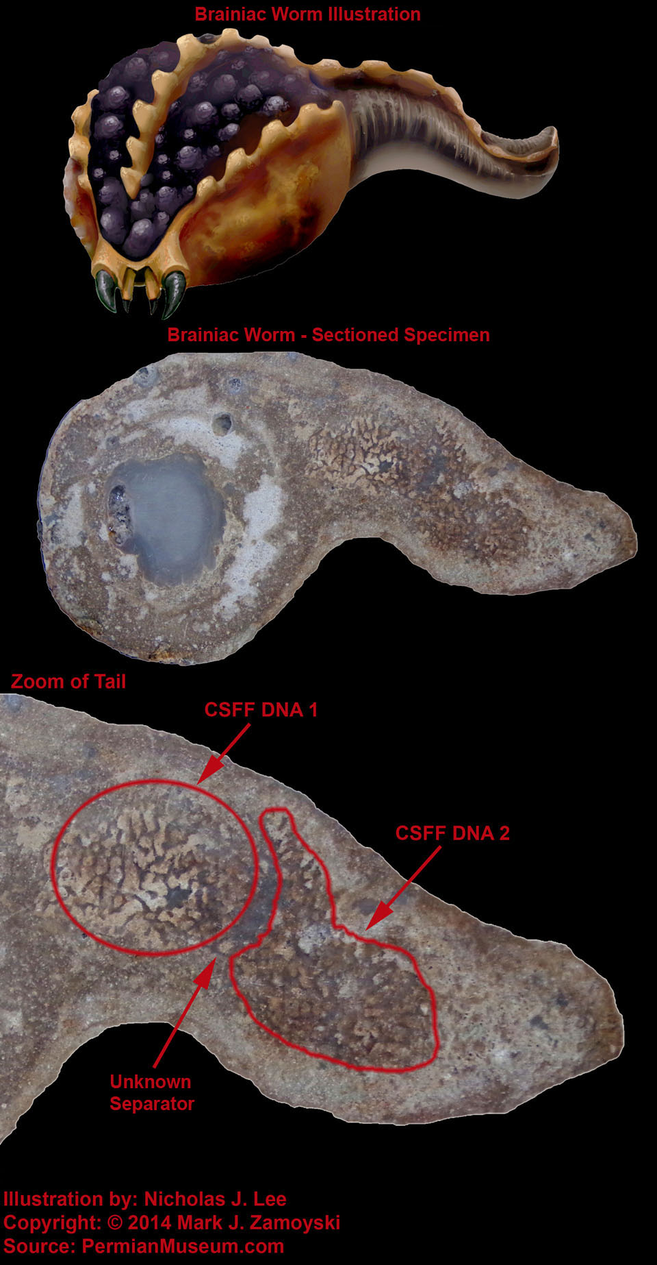 The DNA underlying the fossils on the meteorite fills in a lot of missing pieces in our normal size earth fossils found at the CSFF site 20 miles away. Together, the two provide a more complete picture of life forms that exist on earth today.