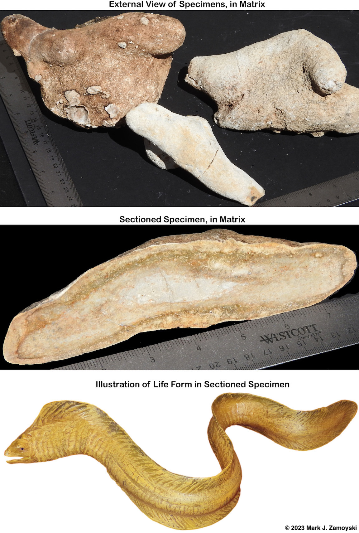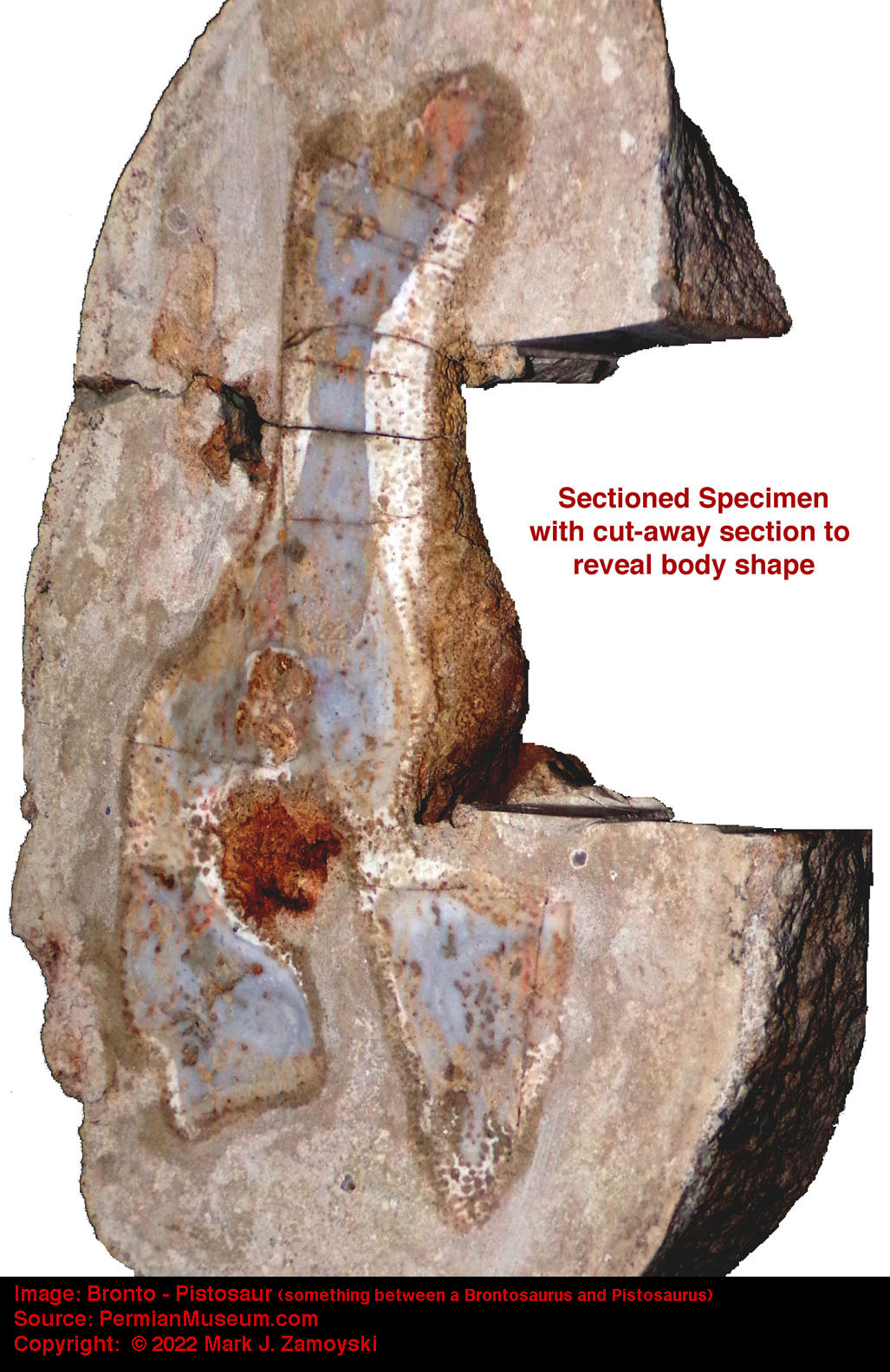 4) The internal preservation visible by sectioning a specimen (i.e. cutting it in half) is so good some times that it reveals anatomical features such as neurons, undigested stomach contents, and even gestating progeny. The internal preservation can typically reveal the general external morphological shape of the life form much better than removing the external matrix.