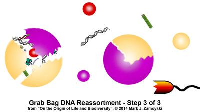 However, the single self-assembling lipid bilayer cell wall membrane and more fragile DNA both facilitated DNA reassortment of eukaryotic cells into new life forms, under the right conditions.