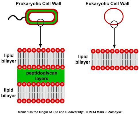 Prokaryotic cells have a tough triple layer cell wall, can thrive near volcanic vents 3,500 feet below the ocean surface and live two miles deep in soil at pressures of 5,000 PSI. In contrast, eukaryotic cells have a single, fragile lipid cell membrane that can be easily ruptured by a soft punch.