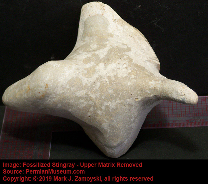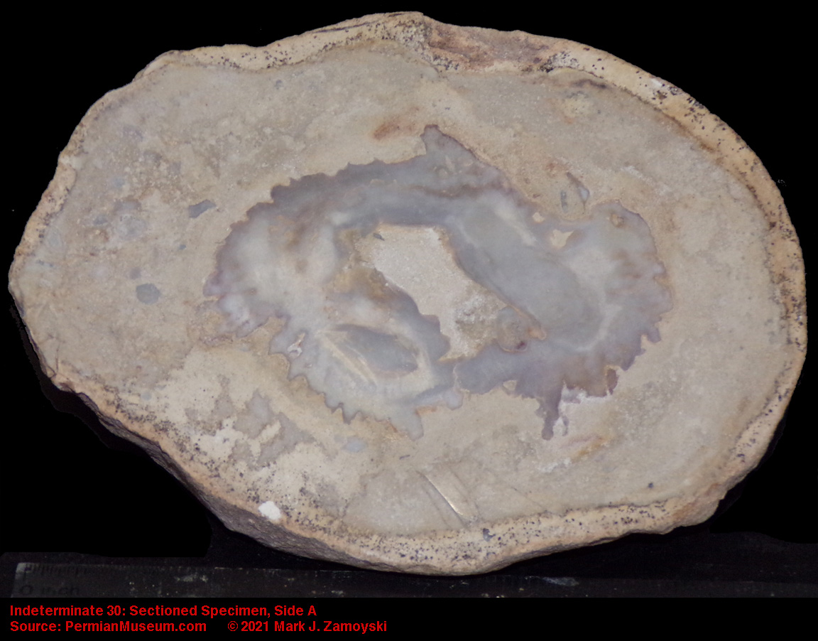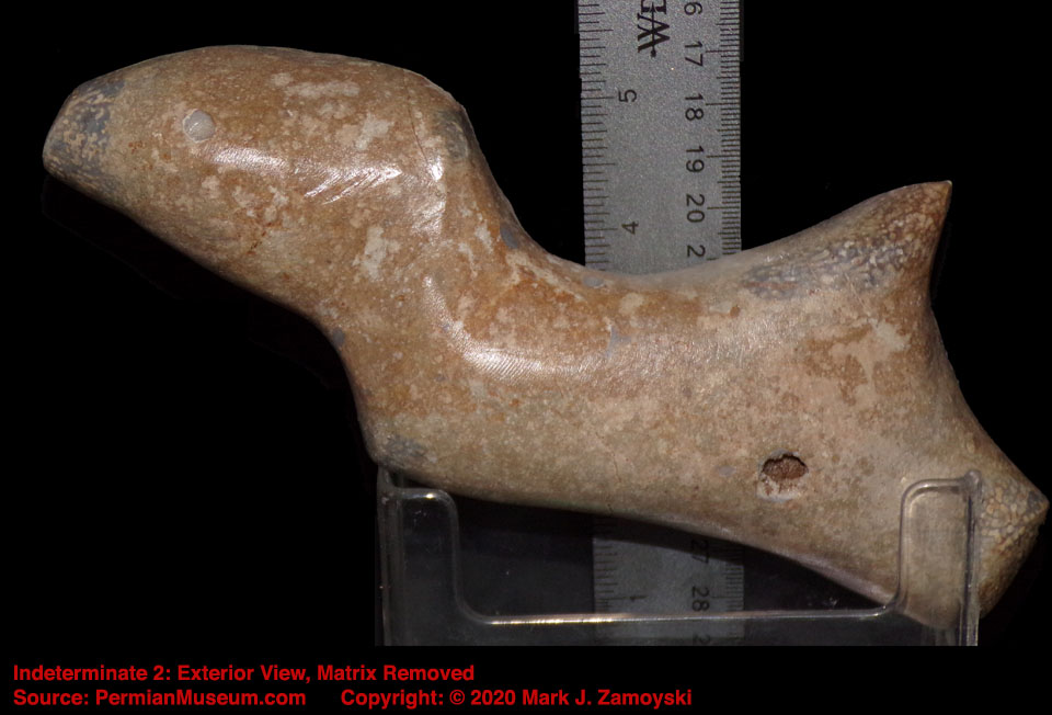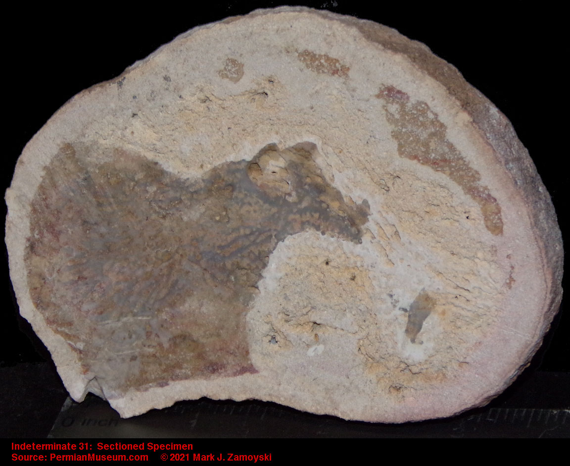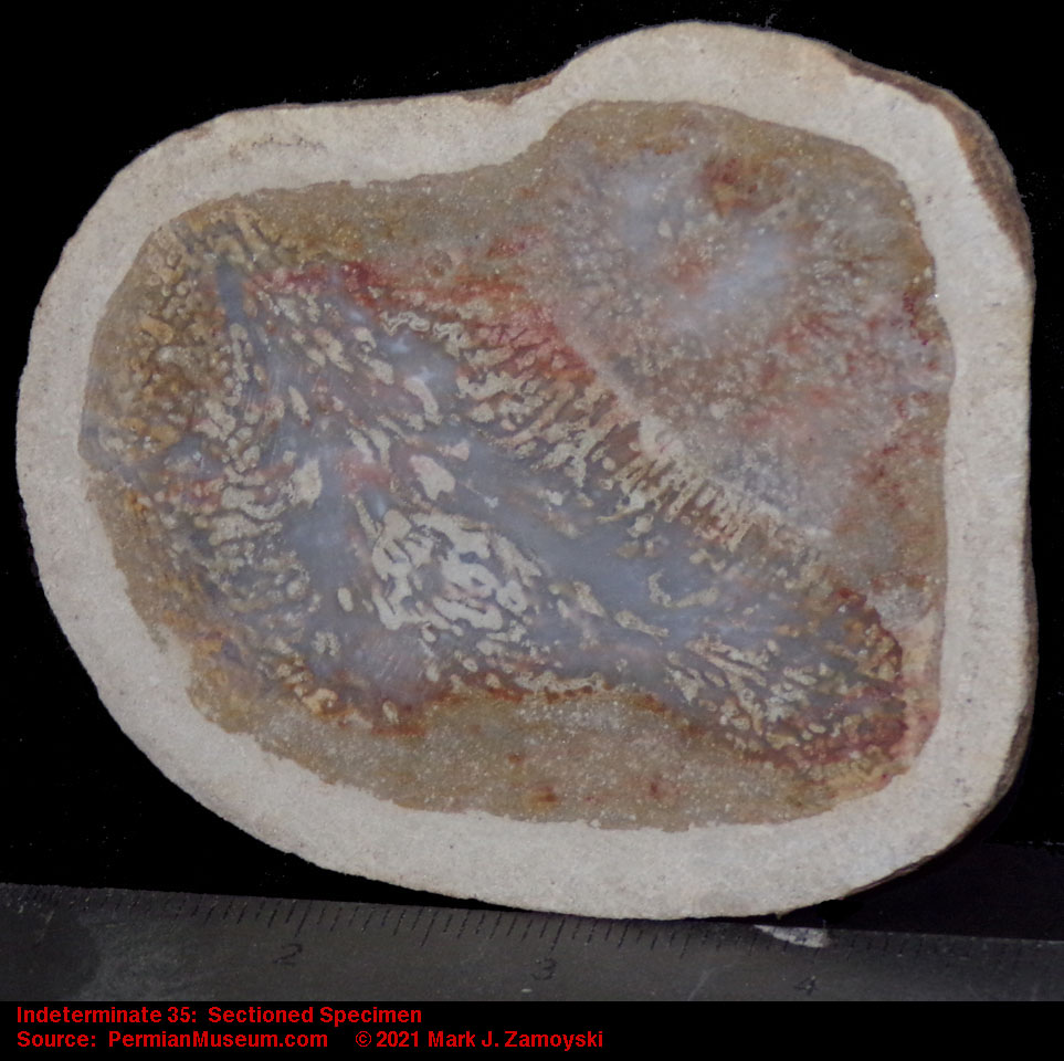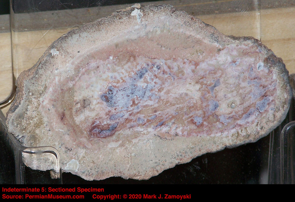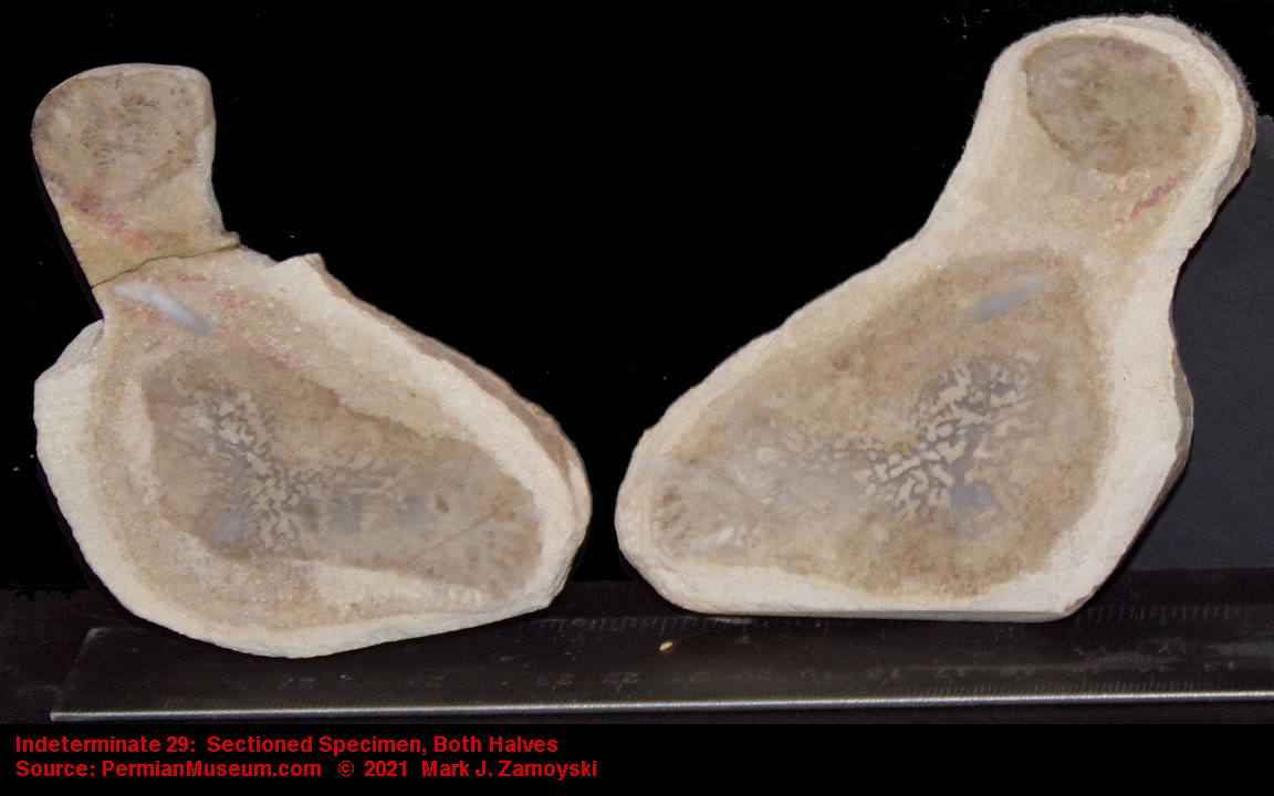 Author is extremely grateful to Dr. James T. Sprinkle of the University of Texas at Austin, who took the time to look at the picture and identify a potential Cambrian counterpart. A smaller version of the specimen above first appears in the fossil record around 500 ma at the start the Cambrian Explosion of Life (Boardman, Fossil Invertebrates, 1987, p.114 Figs. A and B ) and was called a Protopharetra. It appears here again during the Permian Explosion of Life, and author has named this larger version the Permian Protopharetra.