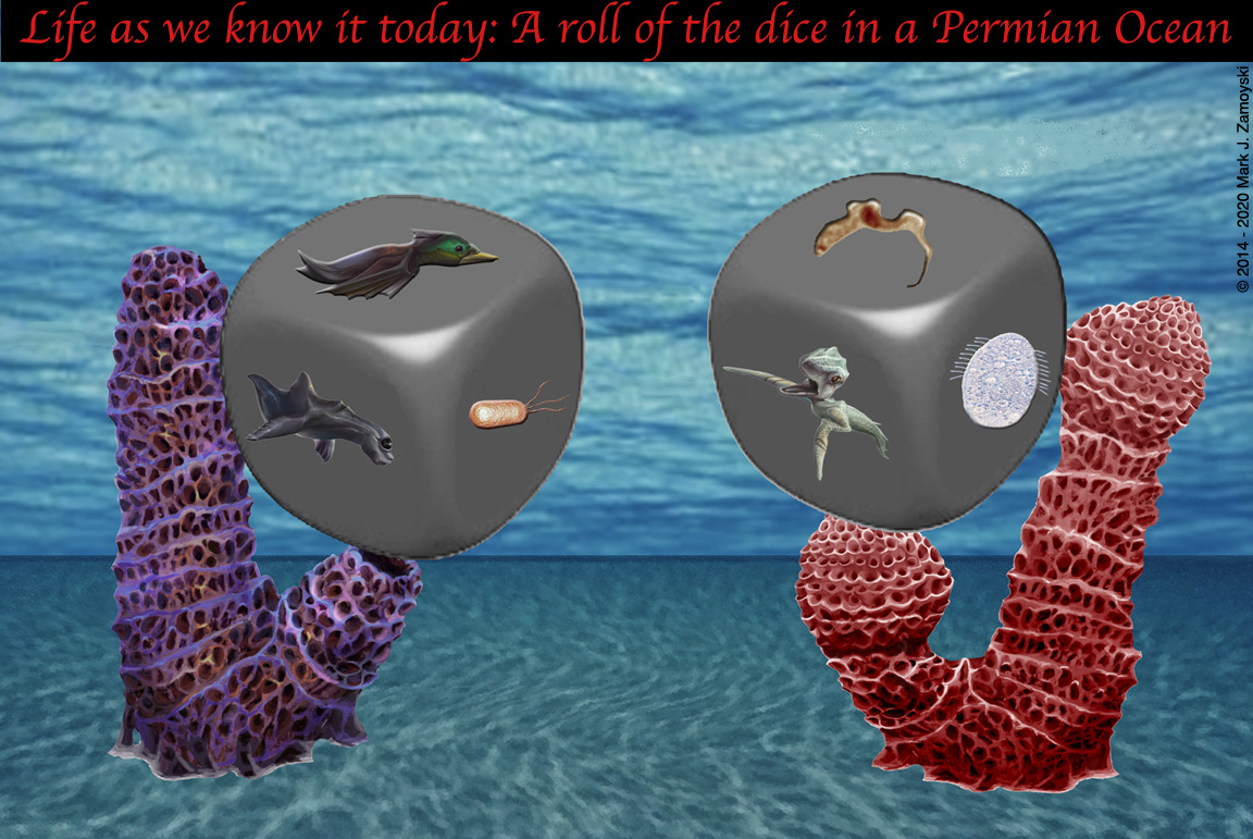 3) There were 4 extinction events during the Permian period, with the last and most severe killing 90% of ocean species. Extinctions are a requisite condition for survival of new life forms, otherwise they are just lunch for an established predator.