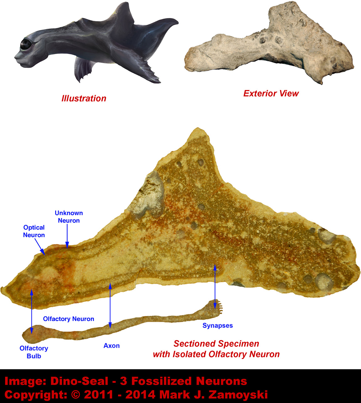 Sectioned View of Dino-Seal Reveals Three Fossilized Neurons: