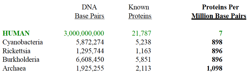 Eukaryotic cells had fragile multiple strands of DNA rather than the structurally stronger circular DNA. DNA efficiency was also much worse, as measured by the number of proteins they could produce per million base pairs of DNA.