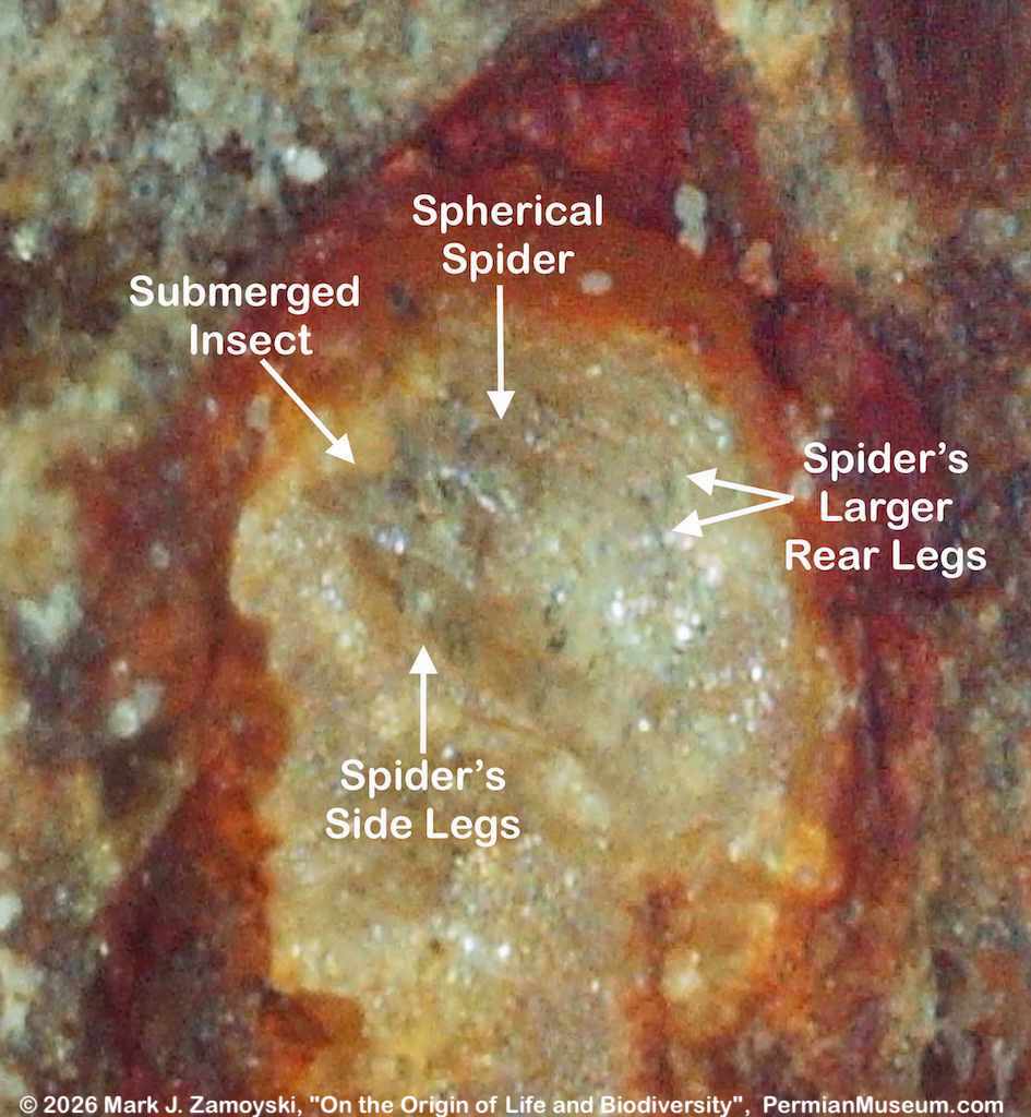 1) We never found a spider fossil at the CSFF rich earth site. The meteorite had two spiders.