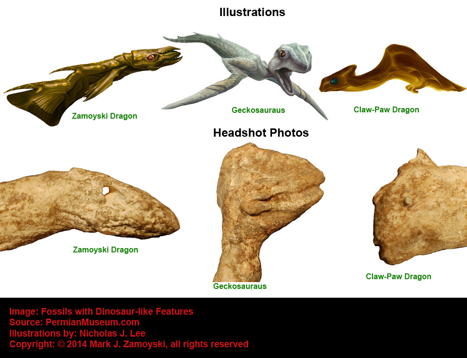 5) The reptilian fossils we found at the CSFF rich site were forerunners of reptilian carnivorous dinosaurs. The meteorite reptilian forerunners were conventional lizards and crocodiles.