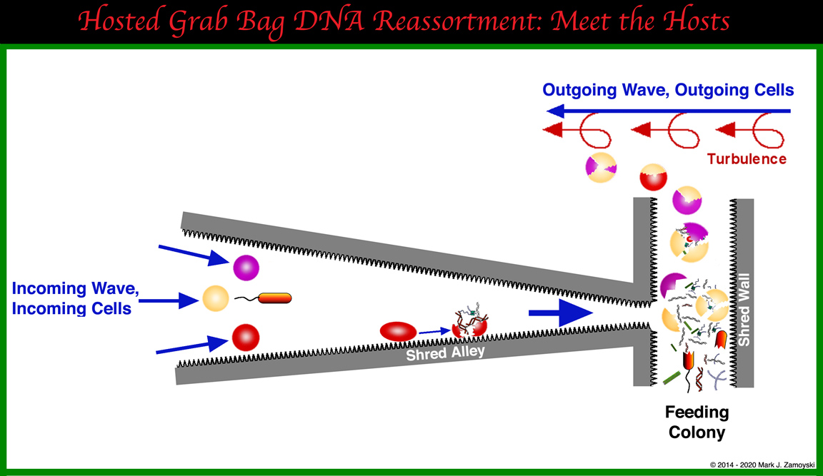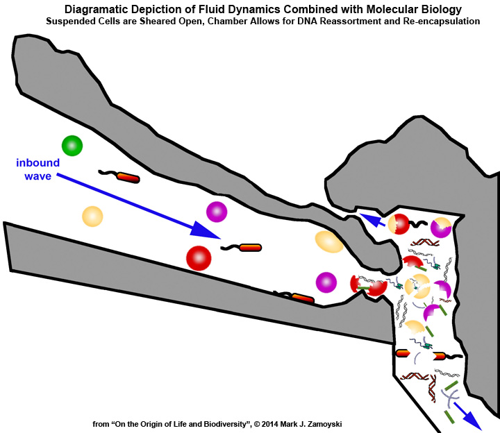 Combining fluid dynamics with molecular biology reveals how these structures are capable of hosting this "grab bag" DNA reassortment process. A detailed presentation of several of the CSFF structures, and a review of how they fulfill the requirements necessary for genetic reassortment, under known principles of fluid dynamics and molecular biology, are included on the website: