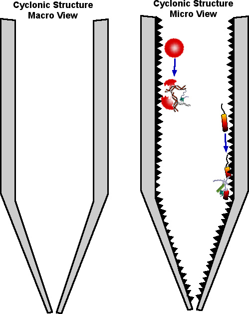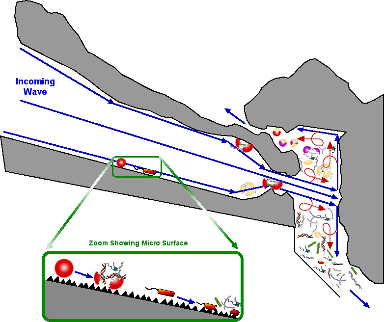 A cubic inch of coastal water contains more than 15 million suspended cells, from a large variety of life forms. CSFFs channel this water, shearing open cell membranes to release the DNA, proteins, and other intracellular contents to the feeding colony below.