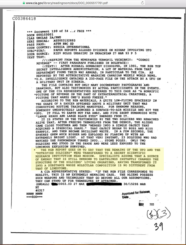 In many cases, it appears our life forms were instantly turned to stone. To say this type of fossilization is poorly understood is an understatement, however it is not without precedent. It is in respects similar to a case revealed in recently declassified documents where "a source of energy that is still unknown" was able to instantly transform the structure of a living organism "into a substance whose molecular composition is no different from that of limestone." ( source: www.cia.gov/library/readingroom/docs/DOC_0005517761.pdf ). We will refer to this process as "death by limestone fossilization".
